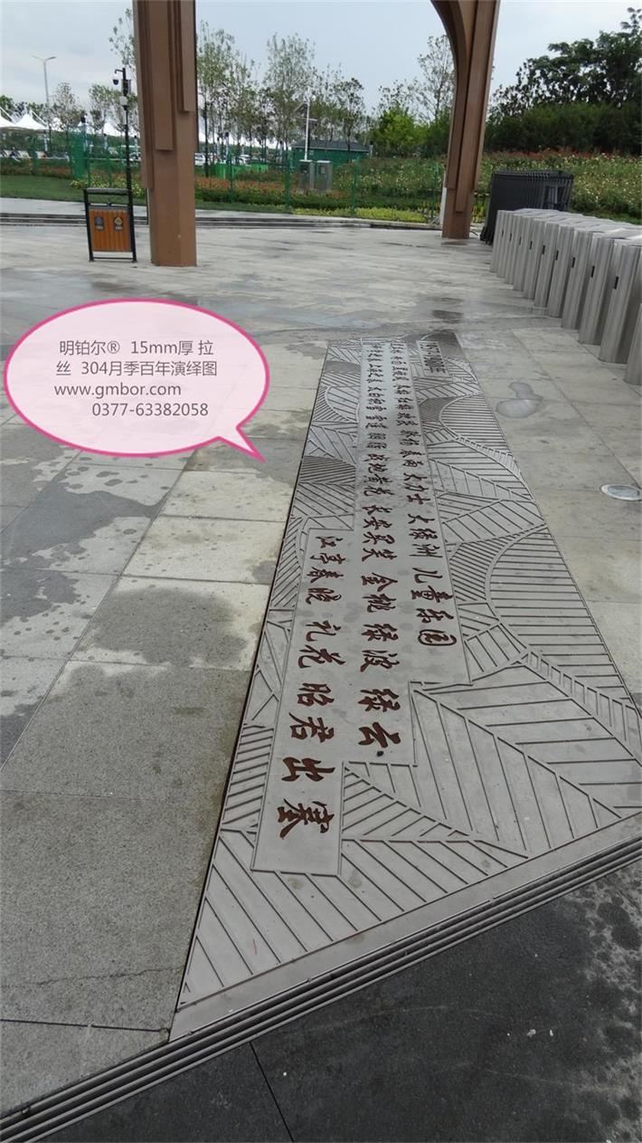 明鉑爾?不銹鋼月季園主入口大門304不銹鋼10毫米厚欄桿,6毫米厚水池10塊月季花圖,利用不銹鋼的拉絲紋路反光色差經(jīng)驗(yàn),解決了北京設(shè)計(jì)院林博士要求很難做到的不銹鋼激光雕刻2毫米深度的月季花圖效果,經(jīng)過我數(shù)10次的大樣,努力,研究終于做出了最佳理想的效果,出乎意料之外的精美,背后多少時(shí)間的付出,不惜一切代價(jià)的努力方能成就精品。1957年至今13塊月季名稱地雕,近200平方擋墻6毫米月季花雕刻圖,這些所有的產(chǎn)品沒處細(xì)節(jié),每一條線都經(jīng)過CAD在電腦修改檢查再修改再檢查,打樣再修改再細(xì)化的一個(gè)漫長(zhǎng)的圖紙修改過程最終敲定的方案效果,擋土墻鉚釘內(nèi)陷,我們加焊接整體再拉絲處理,每一處方案都是創(chuàng)最優(yōu)品質(zhì)去展現(xiàn)給南陽不銹鋼月季藝術(shù)的高水準(zhǔn),為迎接全國(guó)人民的到來參觀,憑著高要求做我們最優(yōu)的產(chǎn)品奉獻(xiàn)給南陽這片土地…